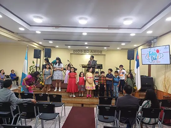 La congregación celebró alegremente el día del niño, para lo cual tuvieron una reunión de la niñez con sus padres, por la mutua relación. El pastor invitado Lic. Benedicto Xatá, se refirió al crecimiento integral que tienen los pequeños, cuando son amados y orientados por ambos padres, con un resultado que está a la vista.