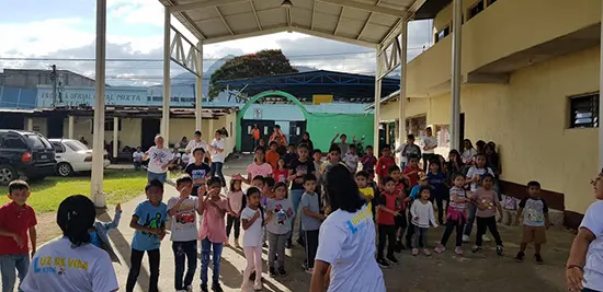 Con gozo y gratitud al Señor celebraron su Escuela Bíblica de Vacaciones con el tema: “Playa Roca Rompe Olas”. En la imagen participan de una actividad juntos para luego ser parte del programa con los intereses de su edad. En total hubo cerca de 80 niños y 10 maestros. Los pastores Eric y Nuria Cruz se han ganado el aprecio de la comunidad.