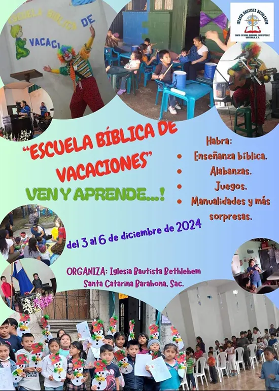 Realizó su Escuela Bíblica de vacaciones, con más de 70 niños de la comunidad. Los infantes gozaron de enseñanzas bíblicas, concursos, manualidades, recreación dirigida, todo ello preparado por sus maestros y las refacciones por las hermanas de la unión Femenil.