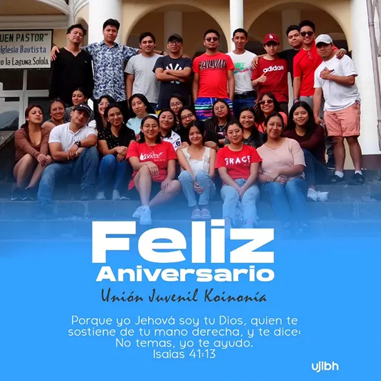 La Unión Juvenil Koinonía, celebró su 31 aniversario como organización de la iglesia, coincidiendo con el campamento que realizó en San Pedro la Laguna, Sololá, a orillas del lago de Atitlán. La gráfica muestra al sonriente y simpático grupo visitando la Clínica Médica El Buen Pastor de la localidad. Felicitaciones Ujibhes.