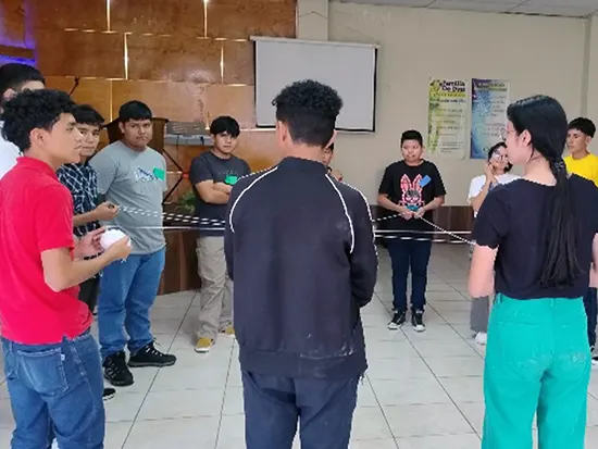 El tejido de la araña nos enseña que la relación es entre todos y para todos; enseña que si alguien no toma su parte se desconforma la telaraña y pierde parte o todo su uso. Esta y otras dinámicas fueron vividas con aplicación por los jovencitos de la iglesia, en el retiro tenido como parte educativa y espiritual de la iglesia para reafirmar los valores morales, espirituales y de relación cooperativa. Dios bendiga a los jóvenes de Familia de Dios y a su pastor David Liquidano Bezares.
