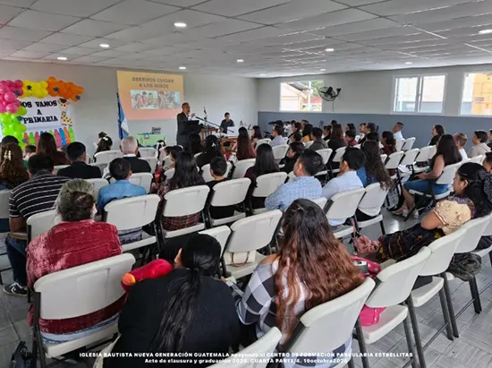 Esta iglesia bautista apoya el Centro de Formación Parvularia “Estrellitas”, el cual tuvo su acto de clausura y graduación, con la predicación del pastor Dr. Salvador Zapeta González, como se aprecia en la foto. Es directora de este ministerio la Licda. Patricia Russo. Los varones de la congregación mantienen un programa continuo de reuniones en el templo y en las casas.