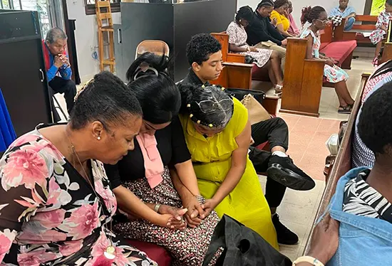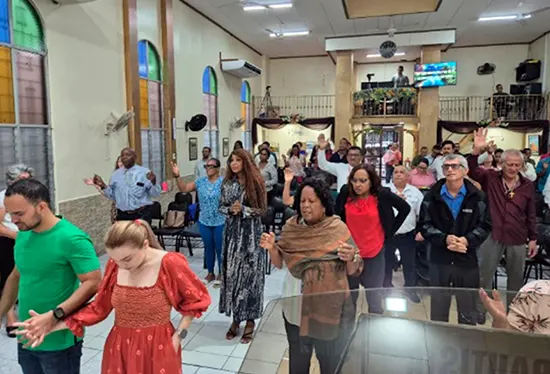 COSTA RICA. Iglesia Bautista Getsemaní, provincia de Limón, en plena oración.